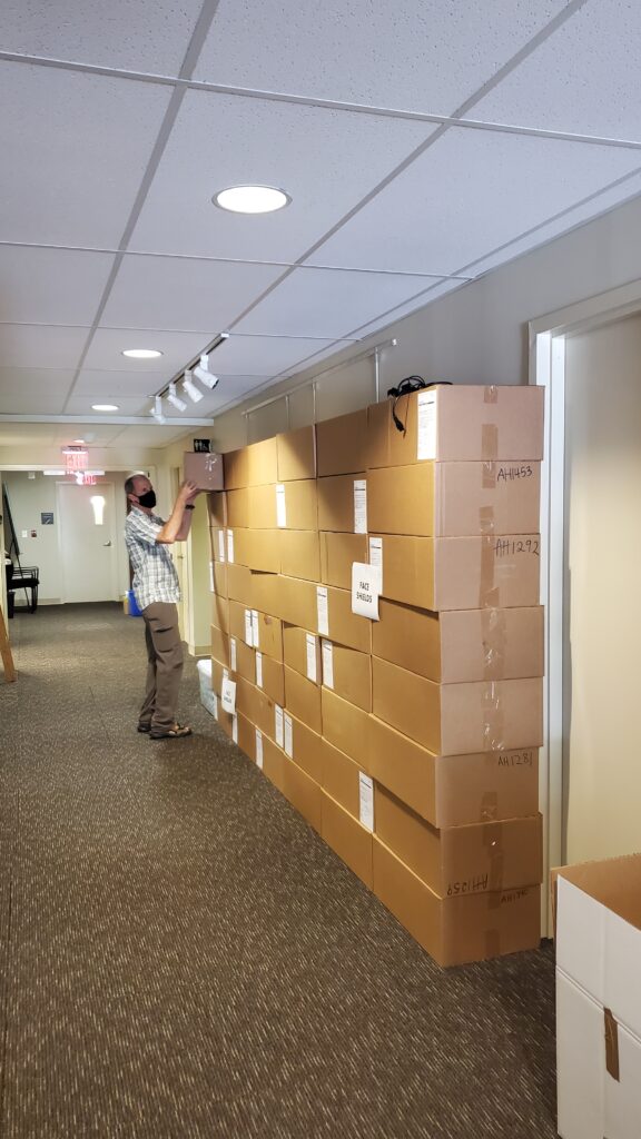 Hospice of the Chesapeake wanted to donate 4,000 face shields and bottles of sanitizer to Medicine With a Mission. We immediately thought of our partner, Project Cure, and a volunteers transported the brand new medical supplies to the Project Cure Warehouse in Pennsylvania.